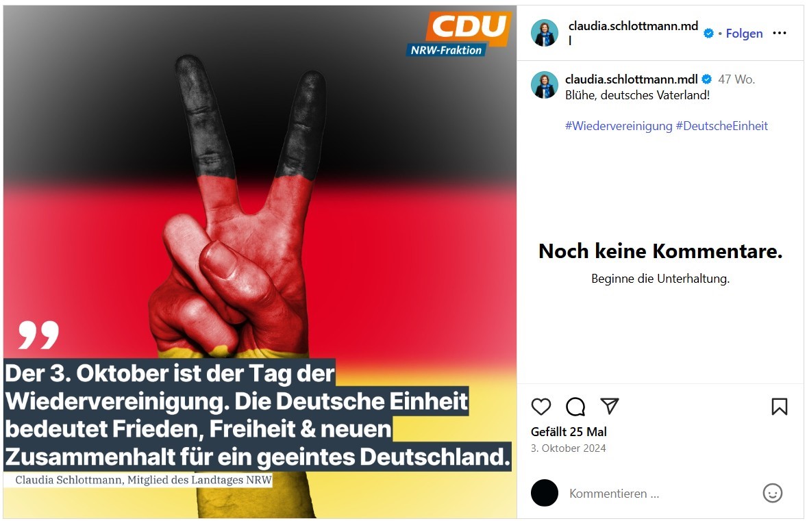 Instagrambeitrag von @claudia.schlottmann.mdl vom 3. Oktober 2024, in: instagram.com, URL: https://www.instagram.com/p/DAq5izeKnCm/ [eingesehen am 29.08.2025].